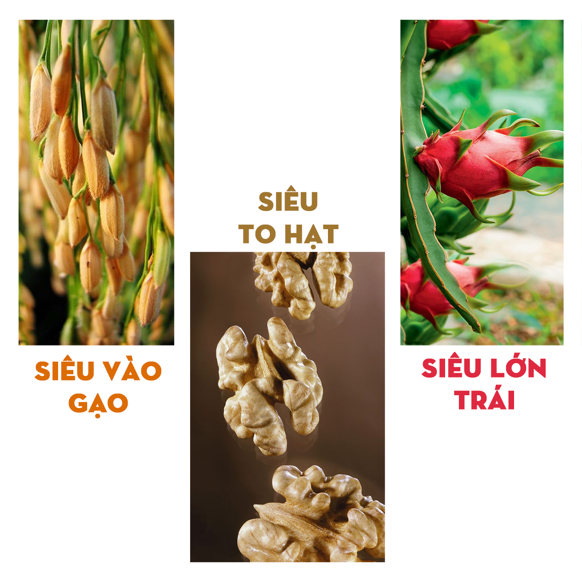 ✔️ Siêu to hạt, siêu to trái: Tăng kích thước hạt và trái rõ rệt.